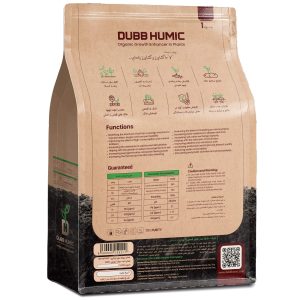 توضیحات محصول: هیومیک اسید یک کیلویی داب هیومیک، حاوی ۷۱٪ هیومیک و فولویک و پتاسیم، باعث اصلاح خاک، افزایش ریشه‌دهی